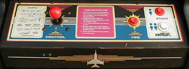 Warp through time - destroy bi-planes to flying saucers - save parachuting men - licensed from Konami