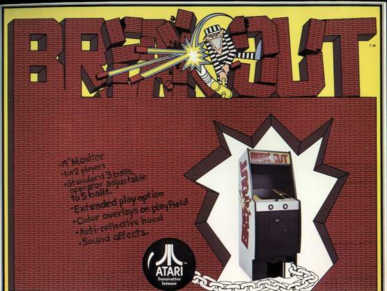 An extension of the Pong theme, Breakout was created by Steve Jobs and Steve Wozniak, who would go on to start Apple Computer.