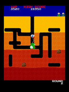 Kill the Pookas and Fygars by inflating them with a pump or squishing them with rocks. - Whereas Pac-Man has fruit, this has vegetables.