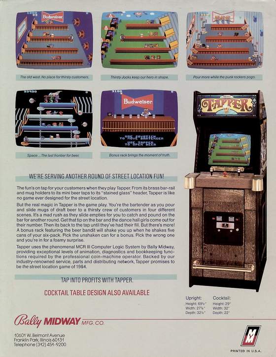 Pull pints and launch at customers - also produced as "Root Beer Tapper" for less adult locations with cool punk bar and space bar levels