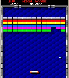 Perhaps the best power-up turned the Vaus into a laser ship and the player could blast the bricks that remained in play. The effects of a capsule were identifiable by their distinctive color and letter coding. Additionally, there were some roving obstacles that occasionally when hit would send the ball off at a wildly sharp angle and require the player to adjust rapidly to the change. When all blocks were cleared, you went to the next level.