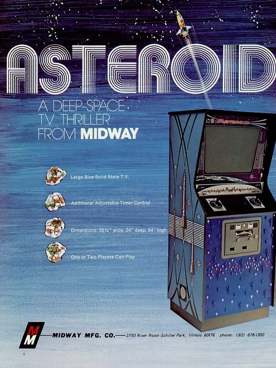 Asteroids were just simple dots. Each time a player made it to the top of the screen a point was scored and the ship was reset to the bottom of the screen. Colliding with an asteroid reset player to the bottom of the screen. Game was timed.