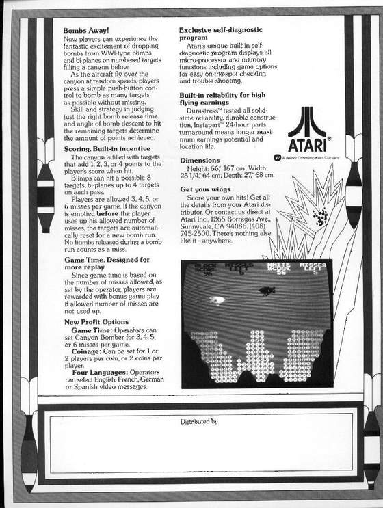 Comment: "As a child played this game non-stop at a local bowling alley. The thrill of testing my 'timing' skills whenever i dropped a bomb just made me get goose bumps. i have obe theme to my presonal collection and it is 'war type' games. Although this game may seem repetative and simple it tests you accuracy and skills with every push of the button. well worth every quarter to see if your skills improve."