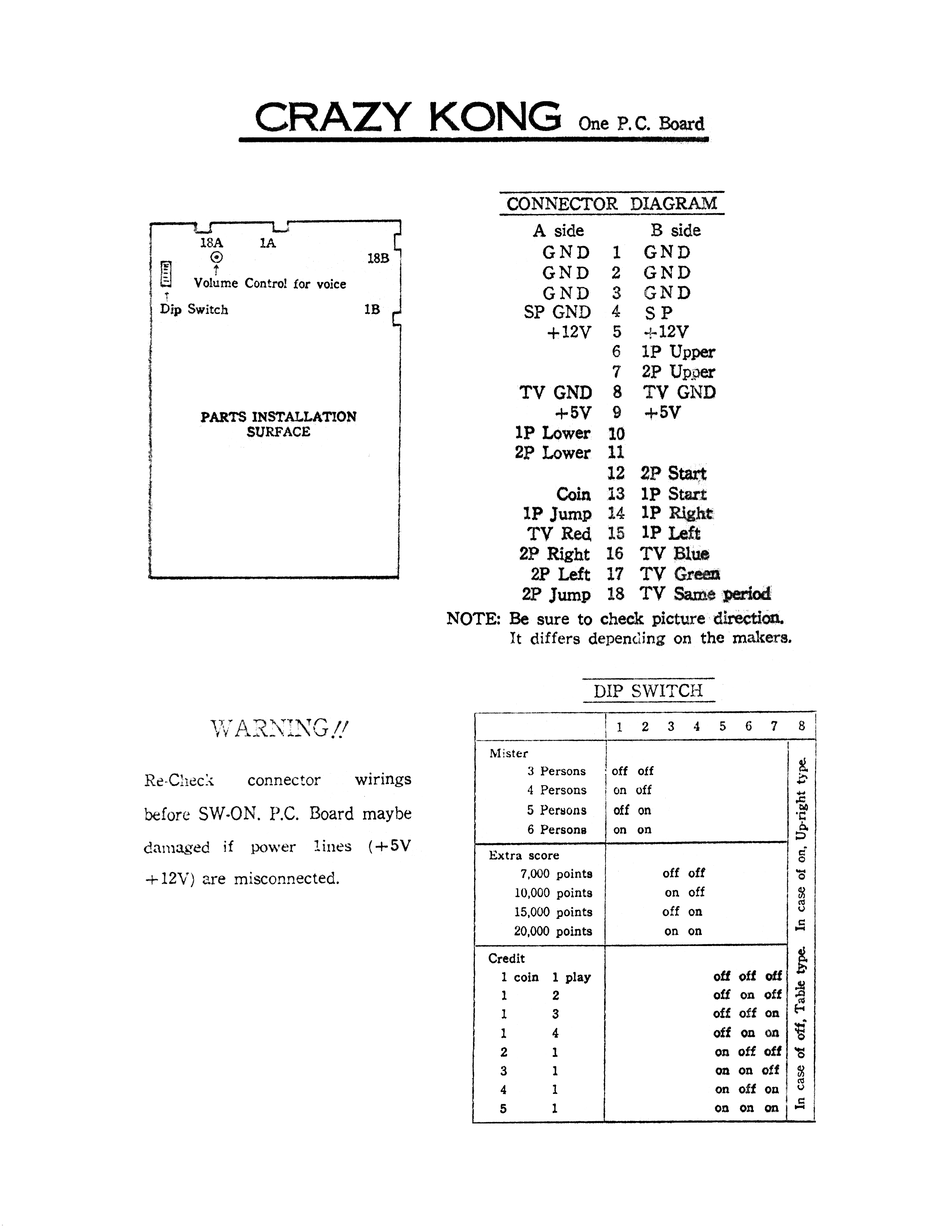 Disclaimer: This information is provided as is. There may be errors in this information. You may use this information only if you agree that Minimalist / Coinop.org, its employees, and noted authors will never be held responsible for any damage, injury, death, mayhem, etc. caused by errors in the information. When working with high voltage, never work alone and always follow safety precautions.