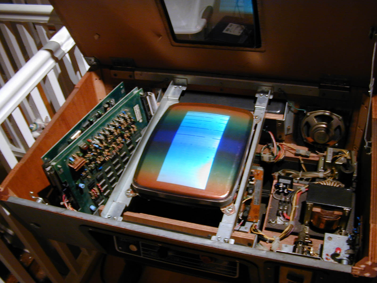 2001-08-07 Success! It's working (but I still need to repair the reset circuit), but then I killed the monitor by trying to adjust the vertical size. The pot was way corroded and fell off the board, collapsing the screen to 1 pixel or so. I am going to replace all the pots as long as I am in there...